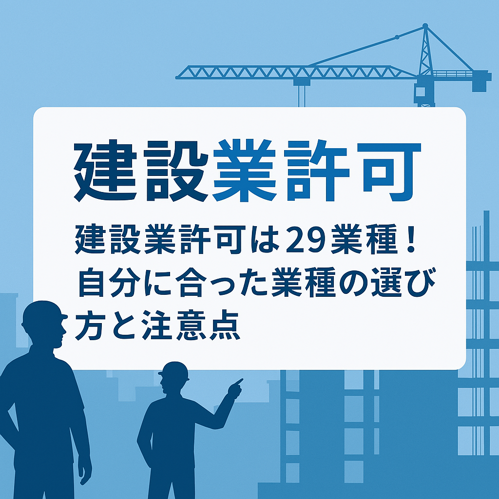 建設業許可を取得するにあたって、意外と見落とされがちなのが「業種の選び方」です。 建設業許可は、ひとくちに「建設業」と言っても、実は29もの専門業種に分類されており、工事内容に応じて申請が必要な業種が異なります。自分の実務に合った業種を選ば...